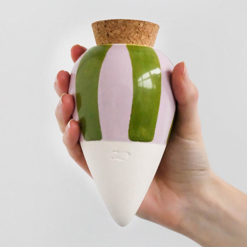 - Größe: Höhe ca. 15 cm mit Korkdeckel, Ø ca. 8,5 cm