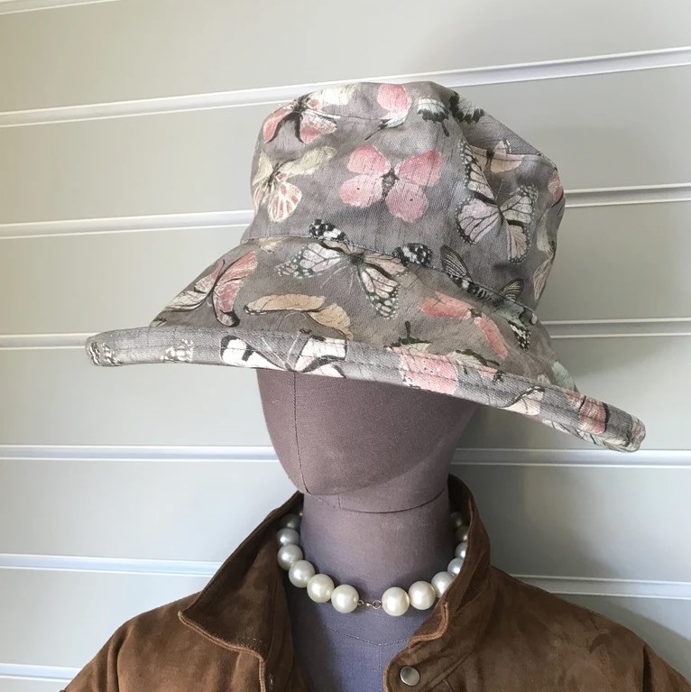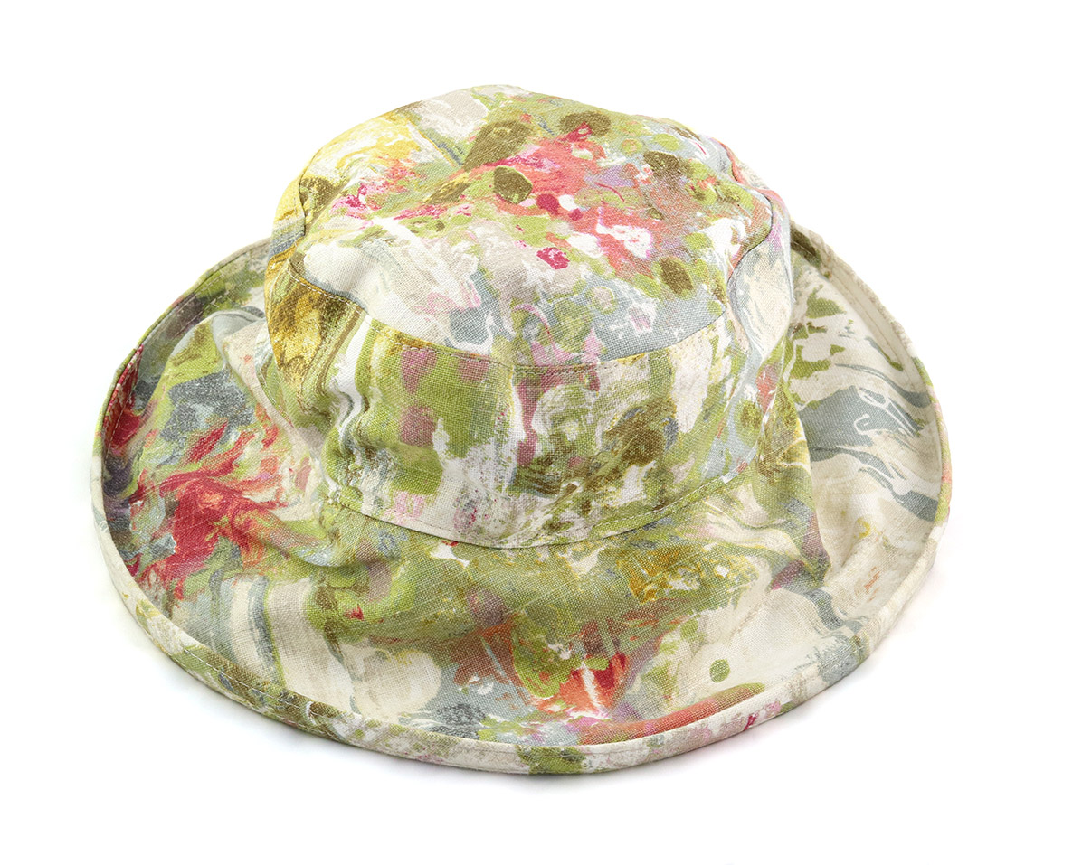 An jedem schönen Sommertag, sei es beim Spaziergang im Park oder beim Ausflug ins Grüne der florale Leinenhut passt immer.