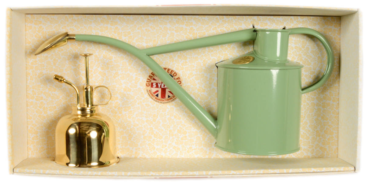 Edles Geschenkset, bestehend aus einer Haws Zimmergießkanne Classic und - als charmante Ergänzung - einem passenden Haws Feinzersäuber.