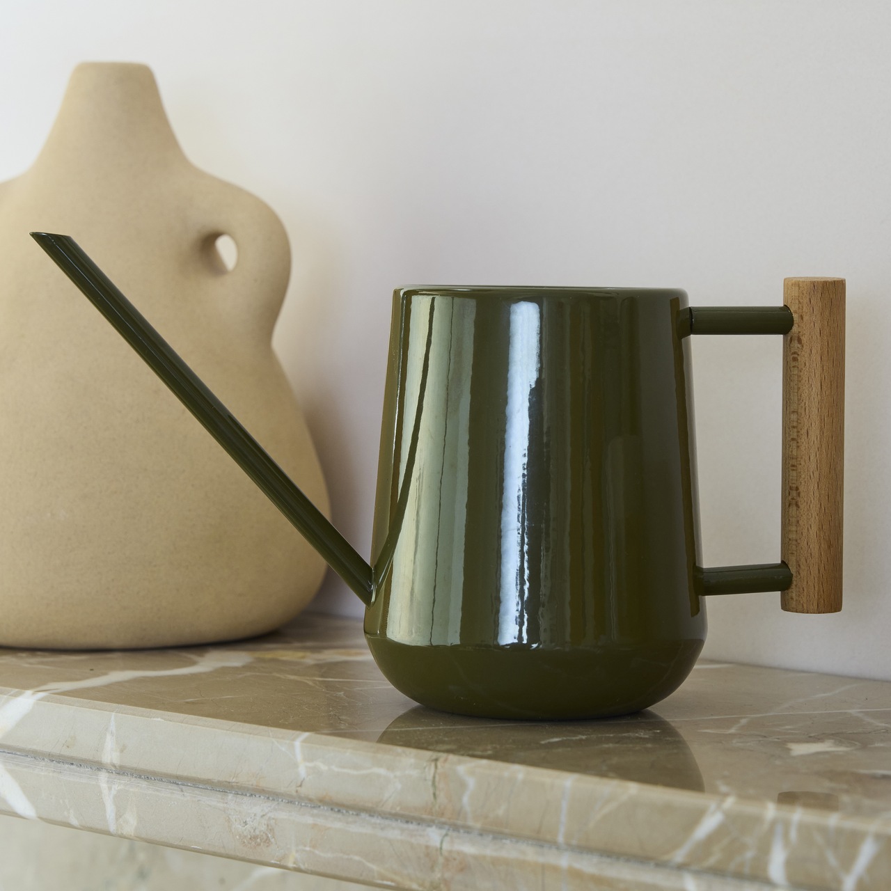 Zimmergießkanne in trendiger Form und modernen Farben - genau richtig, um Ihre Zimmerpflanzen glücklich und gesund zu halten.Die Gießkanne ist perfekt ausbalanciert und mit einer eleganten, schlanken Tülle ausgestattet, was es einfacher macht, das Wasser direkt an die Erde - nahe an die Pflanze zu bringen - zielgenau dorthin, wo es benötigt wird. Der auffällig gewellte Griff passt zu dem neuen Trend in der Innenausstattung, die sich zunehmend einer weicheren Ästhetik zuwendet - mit geschwungenen Formen und fließenden Linien.